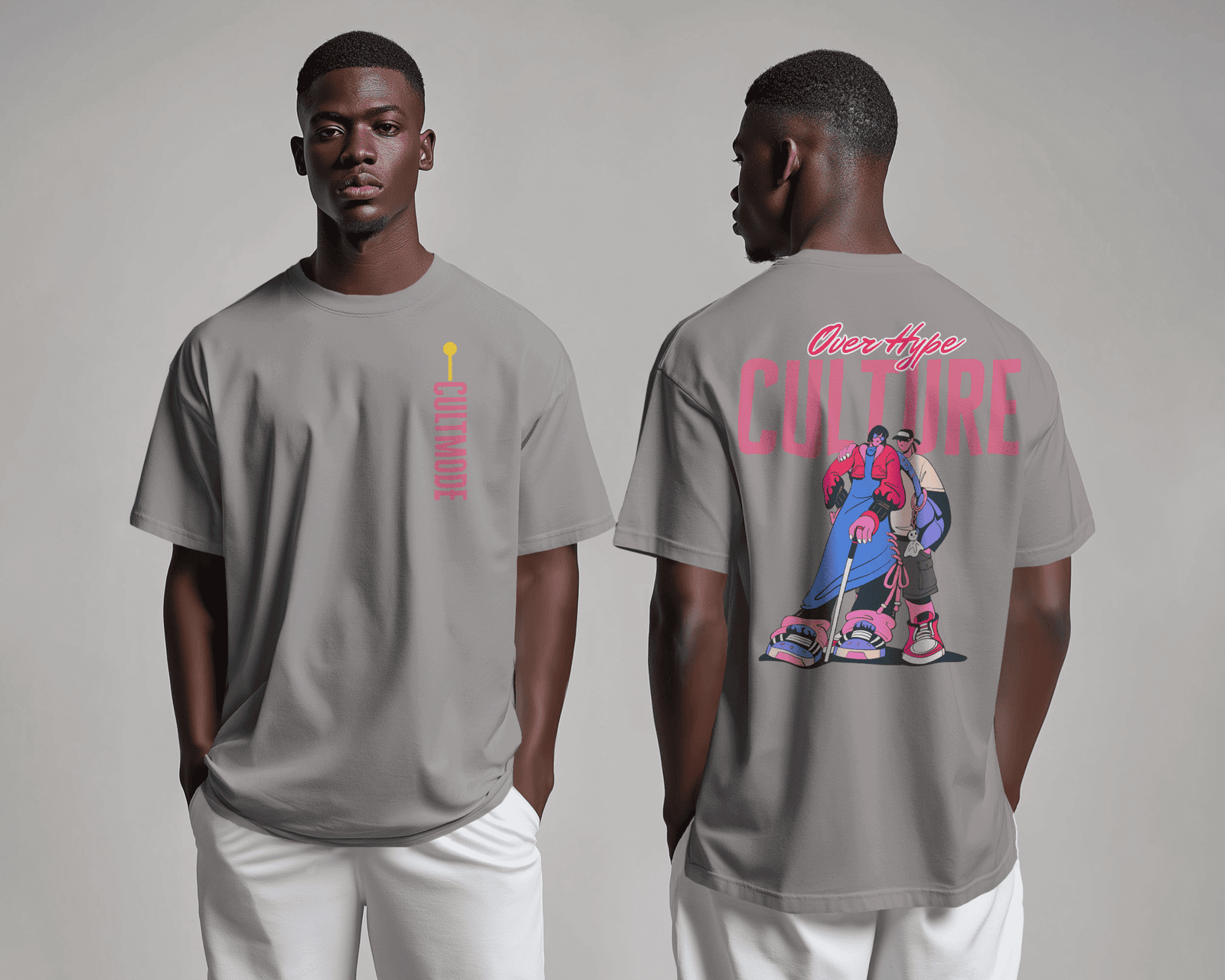 Step into statement street style with the Over Hype Culture Oversized Tee—where attitude meets urban creativity. Designed in a versatile cool grey shade, this T-shirt blends minimal front detailing with a bold, artistic back graphic. Crafted from 100% ring-spun super combed cotton and bio-washed for extra softness, the 240 GSM tee ensures comfort, durability, and guaranteed color fastness. ideal for daily wear and lounging. These oversized tees redefine comfort in every thread.